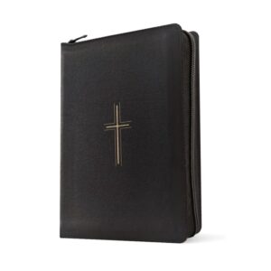 The elegant black cover with cross design offers a classic and timeless look, complemented by a durable zipper closure that protects pages and makes it convenient for carrying notes or bookmarks.